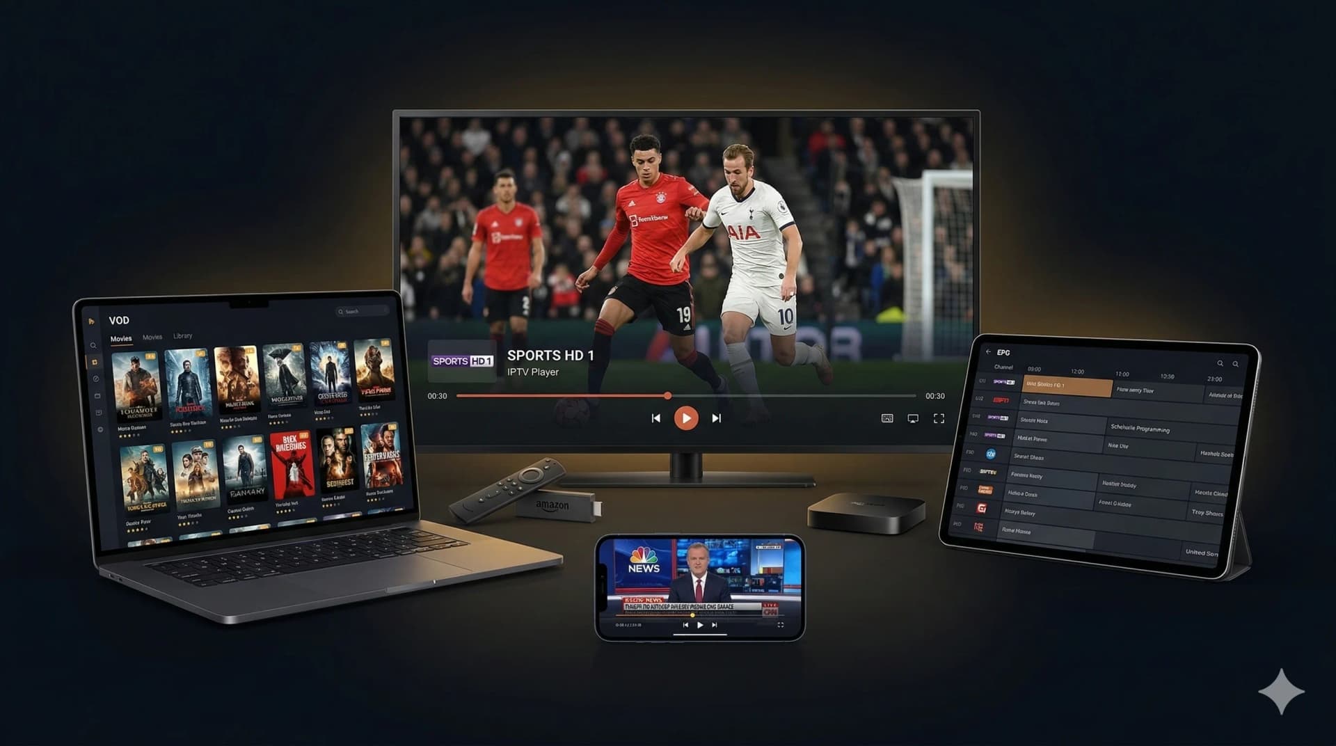 Meilleur IPTV is compatible with all devices popular in American households: Samsung, LG, Sony and Vizio Smart TVs, Android TV, Apple TV, Amazon Fire Stick, Roku, iPhone, iPad, Android smartphones, Windows PC, Mac, MAG Box and Formuler. The Diamond plan allows you to watch on up to 3 devices simultaneously. Works with every US internet provider including Comcast Xfinity, AT&T, Spectrum, Verizon Fios and Google Fiber.